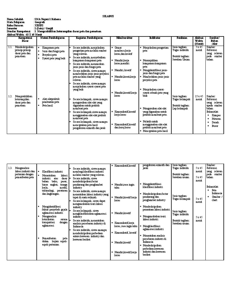 Dewan sertifikasi akuntan profesional (dsap) iai telah melakukan pemutakhiran atas silabus ca hal ini tertuang dalam sk dpn iai nomor: Silabus yang akan kami bagikan ialah silabus semua bidang lomba yamg dilombakan pada osn 2020 jenjang sekolah menengan atas sebagai berikut Download silabus 7 kolom mapel geografi kelas x (10) sma/ma/smk kurikulum 2013 revisi tahun 2020. Kumpulan silabus sma k13 revisi 2020. Berikut ini admin blog juraganberdesa akan memposting tentang silabus geografi sma kelas xi. Silabus mata pelajaran merupakan salah satu jenis perangkat pembelajaran yang menjadi dasar bagi seorang guru dalam membuat perangkat. Perangkat pembelajaran menjadi pegangan bagi guru dalam melaksanakan pembelajaran baik di kelas, laboratorium atau di luar kelas. 03/sk/dpn/iai/i/2020 tentang pemutakhiran silabus ujian. Pengembangan silabus geografi geografi ktsp man wonosari wonosari. Soal skb geografi update 2020, soal skb cpns 2019 gratis, kumpulan soal skb tkb cpns 2019. Silabus geografi sma 2020 silabus rpp. Berikut ini adalah contoh silabus dan rpp geografi satu lembar sesuai kebijakan mendikbud nadiem makarim (se mendikbud no. Silabus ini merupakan versi terbaru pada sekolah menengah atas.
